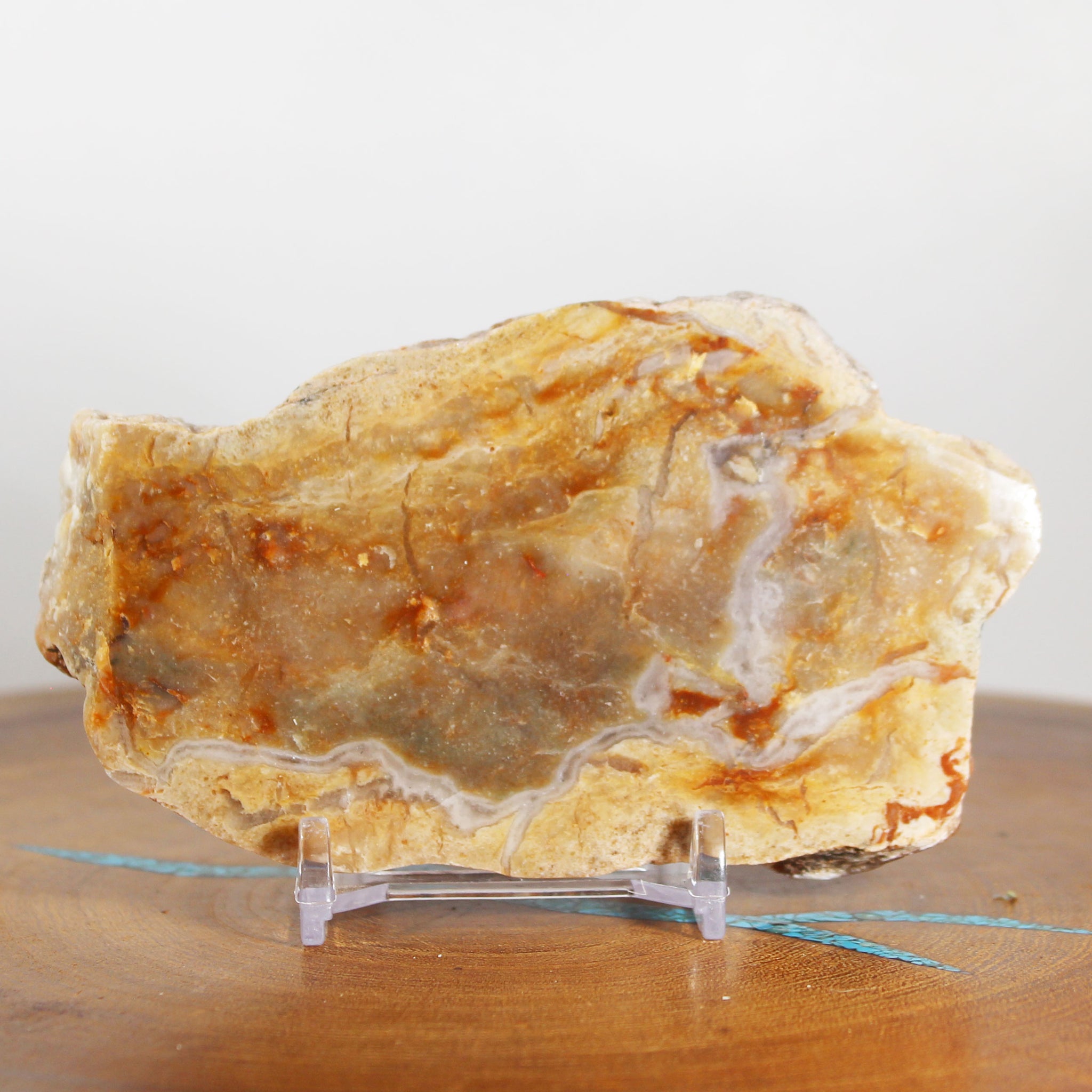 Serious fossil collectors have a minimum of several of these Coprolite specimens in their collections. A fossil is defined as any traces or remains of life in the past. Coprolites fit perfectly into this definition. This is a long piece with a marble like appearance featuring red and light beige agate. The original material has been replaced molecule by molecule with minerals to form into an agate. This 'poop' has been polished into a beautiful piece with a near glass like finish. These are very popular (or is it 'poopular'?) with adults and kids. I provide an acrylic display stand.