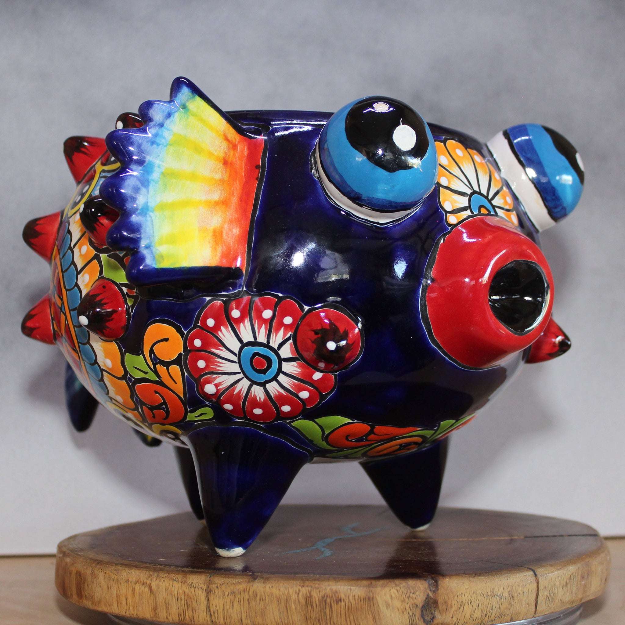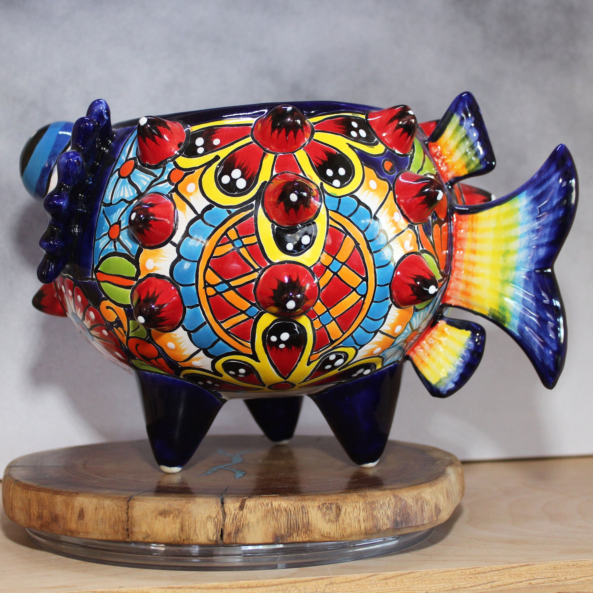 The Puffer Fish’s body is glazed with festive, brilliant southwestern colors that radiate beauty and warmth. These hues are symbolic of Mexican culture, bringing a sense of celebration and festivity to the piece and showcasing the vibrant traditions of the region.